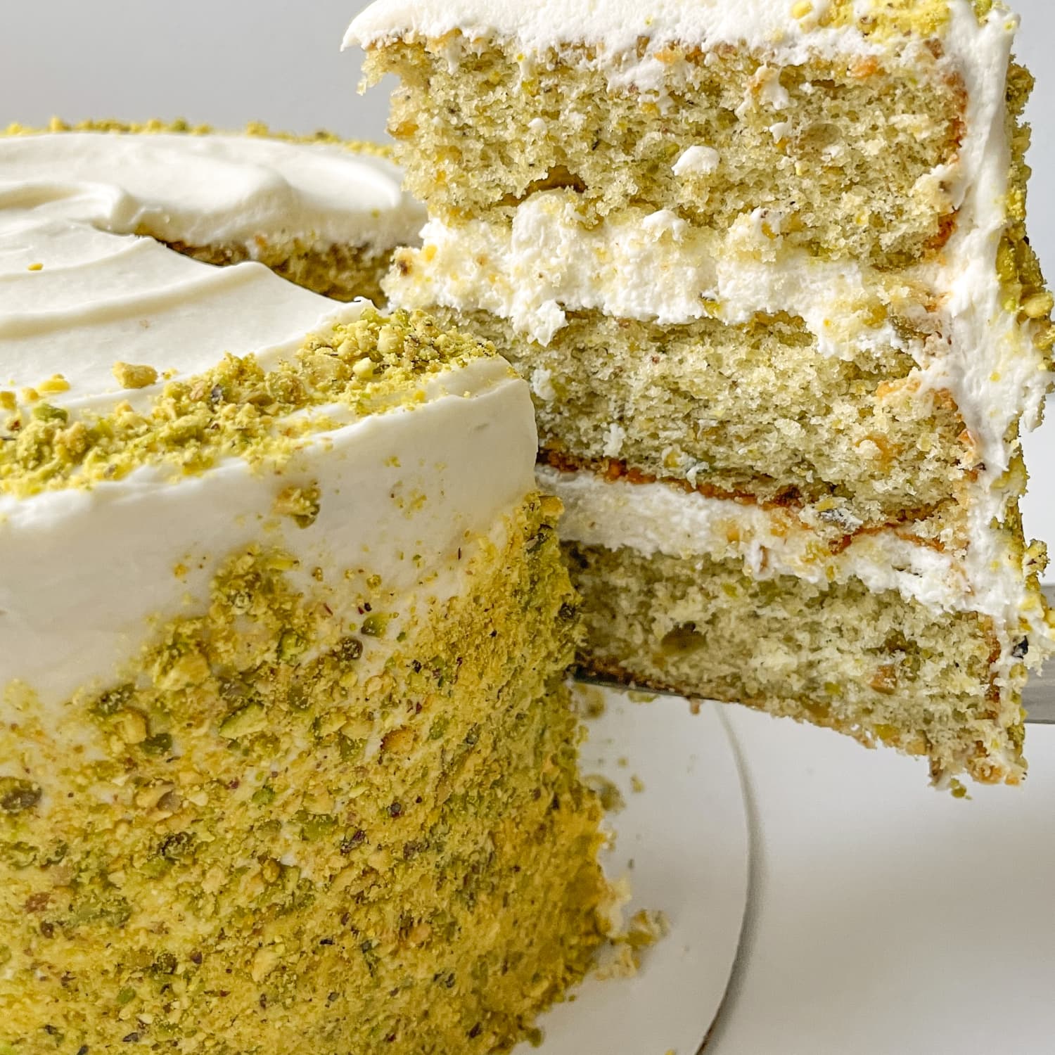 Pistachio Cake W/ Swiss Meringue Buttercream Frosting (2 Layer)