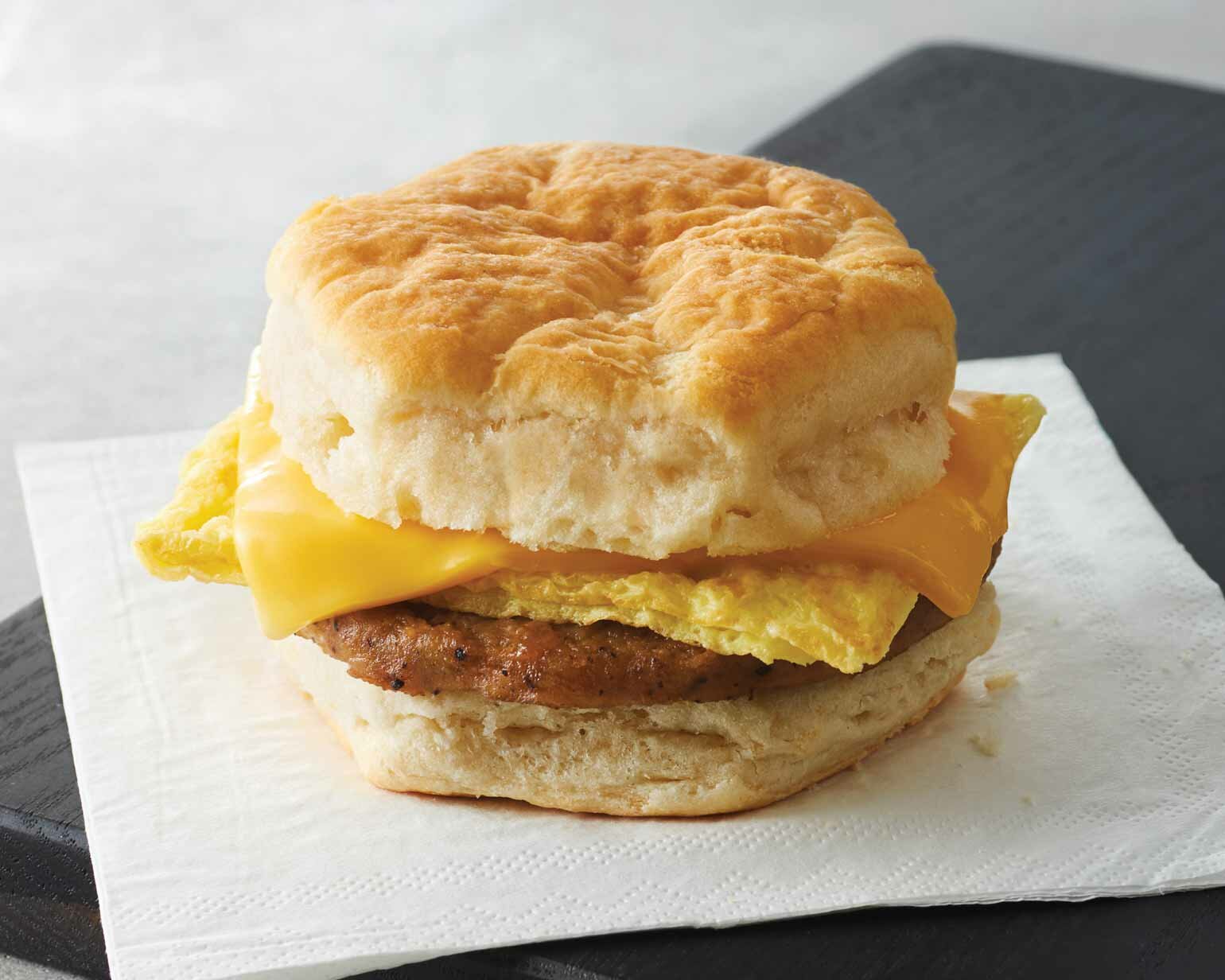 Indulge in the ultimate breakfast experience with our Sausage Egg & Cheese Biscuit. Juicy seasoned sausage, perfectly cooked eggs, and creamy melted cheese come together between a golden, flaky biscuit that's baked fresh. This isn't just breakfast—it's a moment of pure comfort that satisfies your cravings and keeps you energized throughout the day. Grab one today and discover why this timeless favorite remains an absolute must-have for anyone who refuses to compromise on taste or quality.